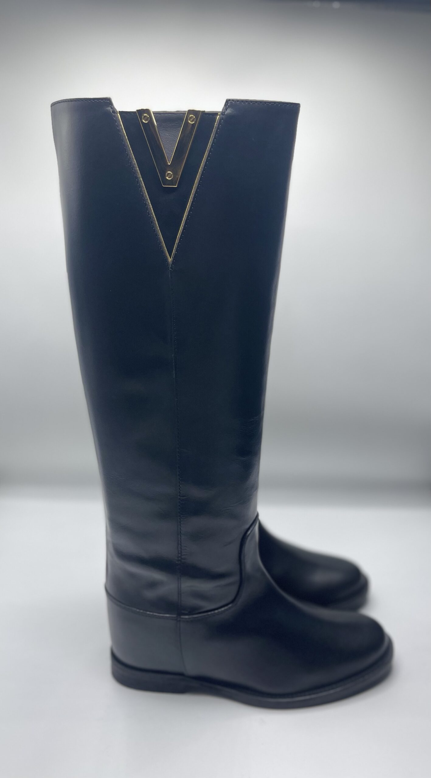 MATERIALE: vitello, dettaglio in camoscio e logo in acciaio, suola e tacco in cuoi 2cm